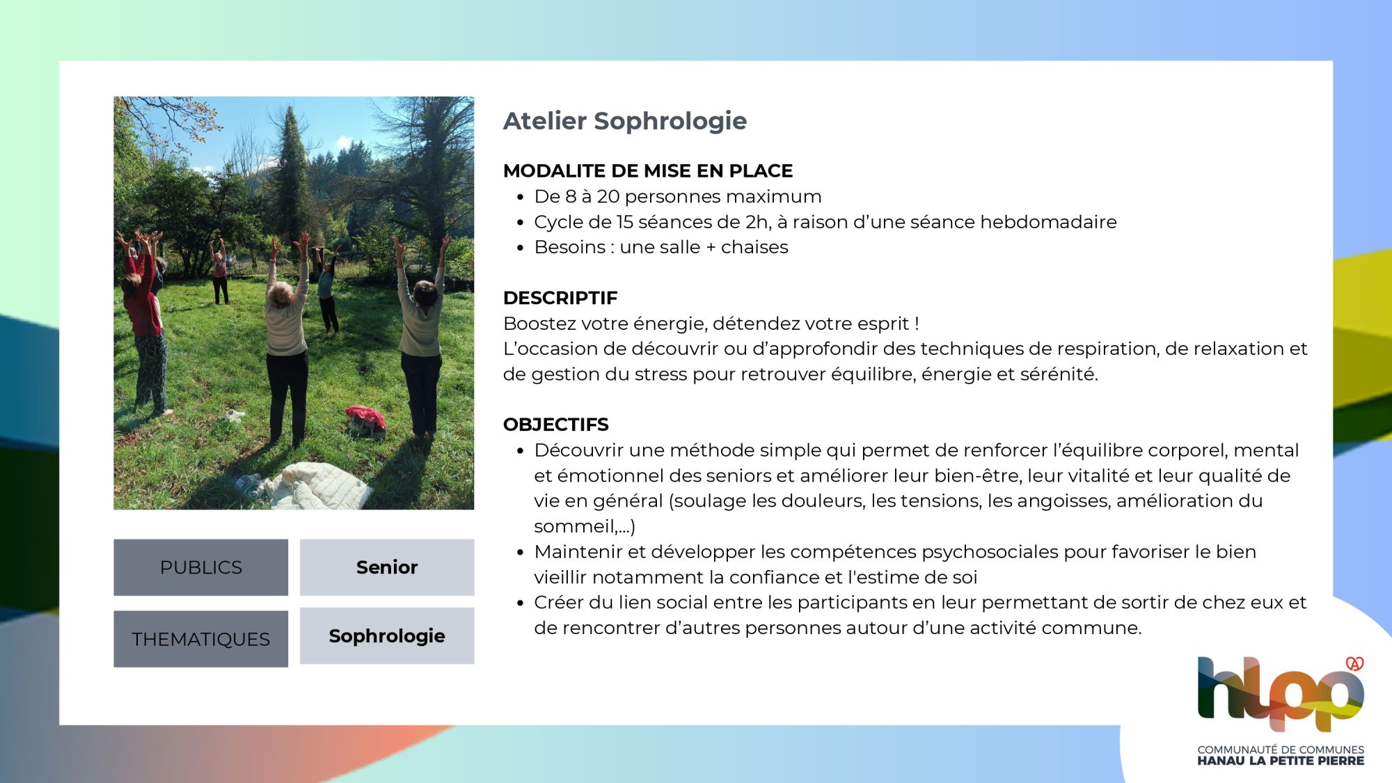 3. Atelier sophrologie (projet porté par la CCHLPP)
